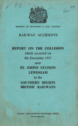 Despite the poor visibility the crew of the Spitfire had built up speed on the long, straight run from London Bridge to New Cross where it passed through the station at something like 40mph. For many years this stretch of line had been equipped with multi-coloured signalling, in theory, was far easier for a train driver to read that the conventional semaphore signals that were mounted on posts or gantries. Tragically the driver of Spitfire powered his train, first, past a double yellow signal light, and then a yellow signal. This should have warned him that the next signal would be RED and require him to bring his train to a standstill. Instead only after Spitfire, the Ramsgate express, had passed the red signal at St John’s was there a brake application. It was too late.